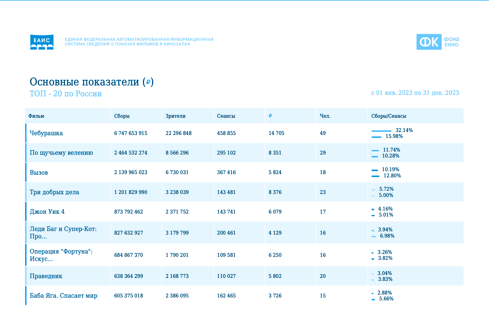 - и, самое главное, - процент от сборов этого проекта в кинотеатрах!