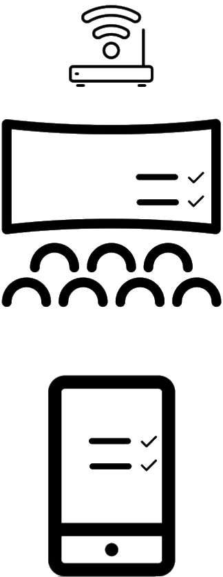 - Перед сеансом посетители кинотеатра используют приложение IN:MOVIE для сканирования QR-кода на экране, тем самым становясь частью процесса голосования.