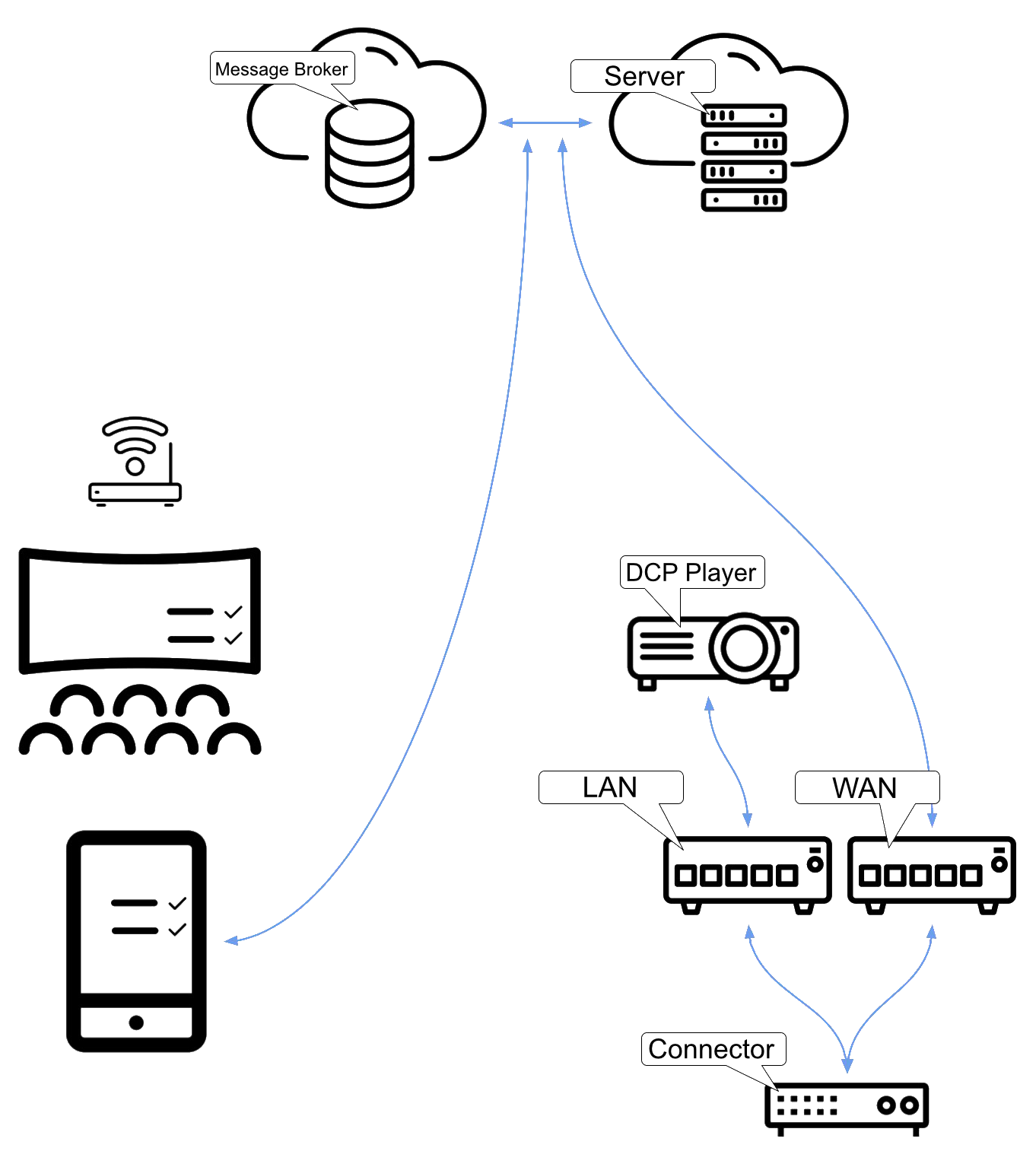 Если в кинотеатре установлен компьютер Лаборатории, достаточно просто установить программу InMovie Connector и всё! Дальнейшая работа с DCP и ключами фильма будет происходить как обычно. Организацию голосования и обратной связи с сервером воспроизведения мы возьмём на себя.